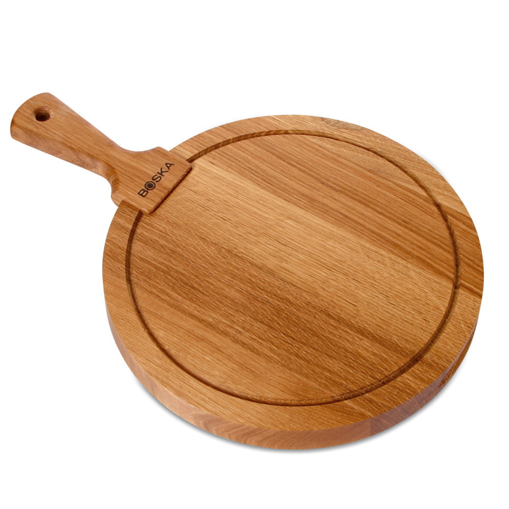 solidna jak dąb, z którego ją wykonano! Deska okrągła z rączką do serwowania sera Friends M, to połączenie piękna naturalnego drewna dębowego z jego wytrzymałością. Deska została specjalnie zaprojektowania do podawania serów. Grubość deski to aż 3 cm, z przodu deski znajduje się wgłębienie, które ułatwia jej przenoszenie. Na spodniej stronie deski umieszczono 5 silikonowy nóżek. Idealnie nadaje się na spotkania rodzinne i imprezy dostojnie prezentując sery. Przed pierwszym użyciem deskę należy solidnie naoliwić, pozwolić by drewno chłonęło olej przez kilka dni. Potem czynność należy powtarzać co jakiś czas. Deskę myjemy ręcznie z dodatkiem łagodnych detergentów.